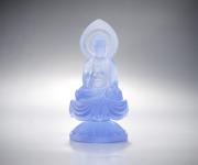 燃灯古佛,为释迦牟尼佛老师,属过去佛之一。因其出生时示现身边一切光明如灯,故称之为燃灯古佛。本尊造像凝神垂目,面容圆满安详。双手结禅定印,体态庄严优雅。上身衣纹线条简洁流畅,下摆如泉水倾流而下,层层荡漾,与顶部背光交汇呼应,流畅圆融。