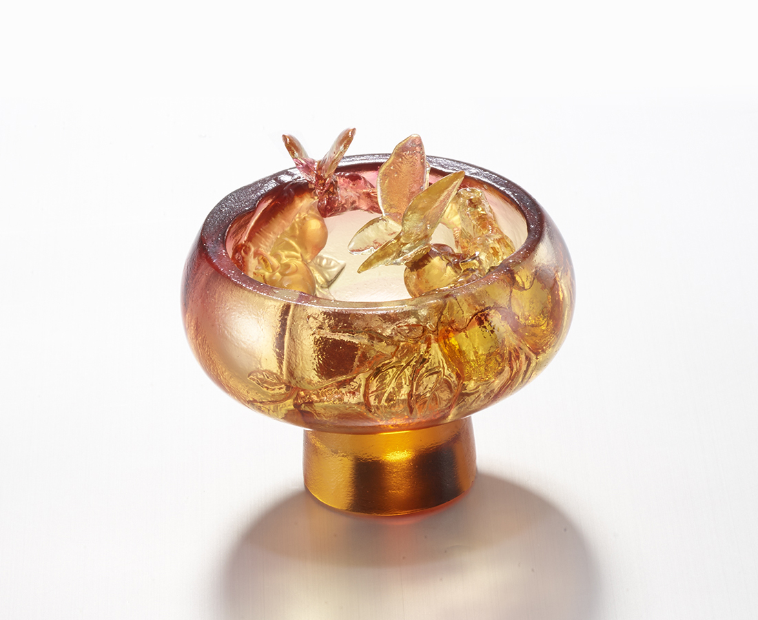 It’s made with a persimmon-shaped bowl as the main body, echoing the delicate persimmon carving inside the bowl, with two butterflies on persimmon to add lively interest.- NO.1403680