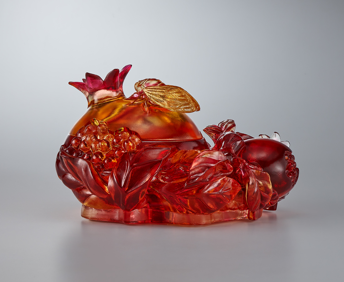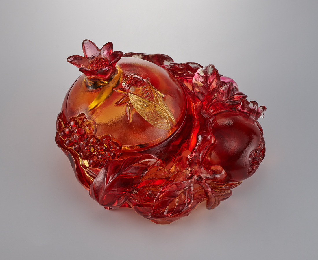 The design of this item is inspired by the National Palace Museum’s collection “Jade water holder in the shape of a pomegranate, Qing dynasty”. In ancient Chinese art creations, it is very common to see pomegranates and cicadas paired together as a theme. The cicada represents the life of summer, and together with the pomegranate harvested in autumn, it represents the meaning of succession. In addition, the pomegranate represents the blessing of family prosperity.- NO.1404115