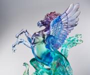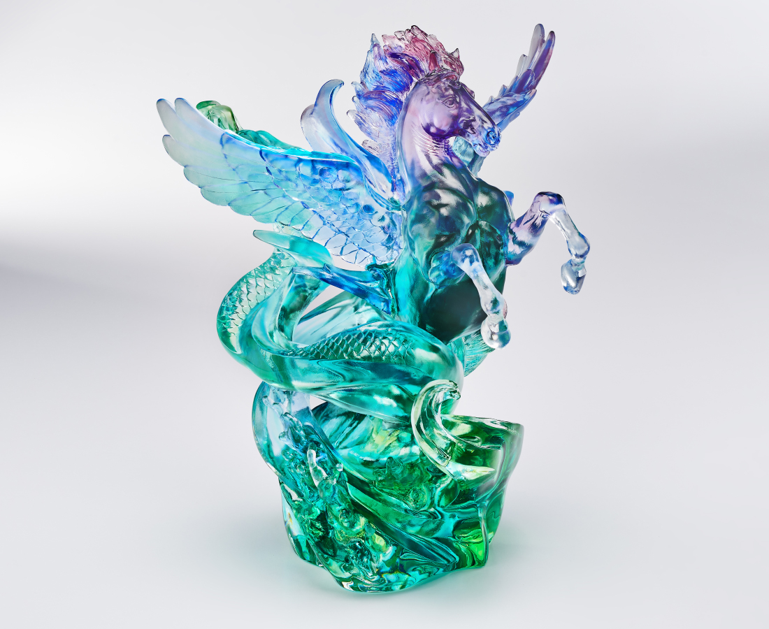 The "Longma" is a mythical beast in Chinese culture that resembles a dragon and a horse, and therefore represents the combination of the most connotative aura of the sky and the earth, symbolizing the talent and character of a person who possesses knowledge and philosophies. The work uses abstract art techniques to present the flying movement of the Longma in a fluid shape, filled with the beauty of light and shadow penetration.- NO.1504108