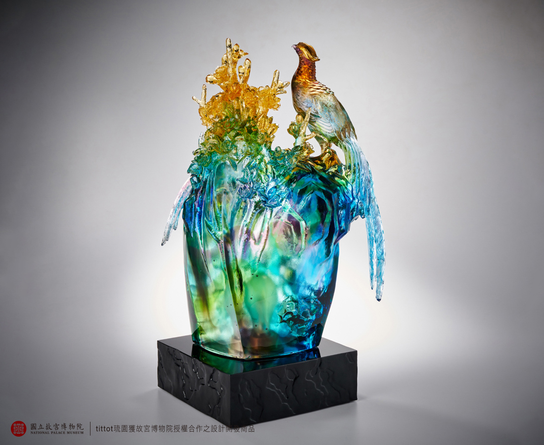 In collaboration with the National Palace Museum, the work is inspired by the painting "Beautiful Spring" by Giuseppe Castiglione, a famous Italian painter of the Qing Dynasty. The greatest artistic value of "Beautiful Spring" is the merging of Eastern and Western painting techniques, so our work also borrows from Western cubist thinking by folding different parts of the painting into a three-dimensional structure. In addition, each element of the painting symbolizes auspiciousness and longevity in Chinese culture, and we hope to offer the greatest blessing to the collectors with the beauty of the reinterpreted colored glaze.- NO.1514097