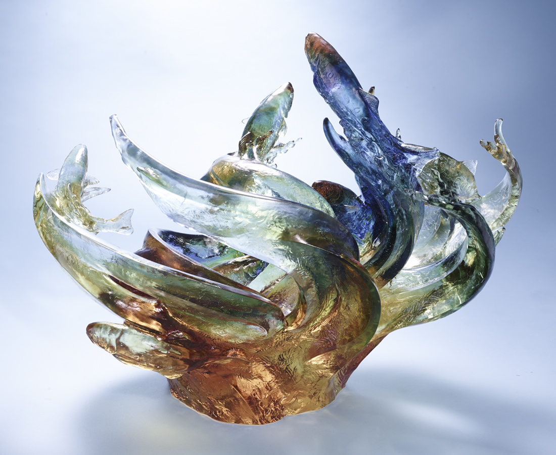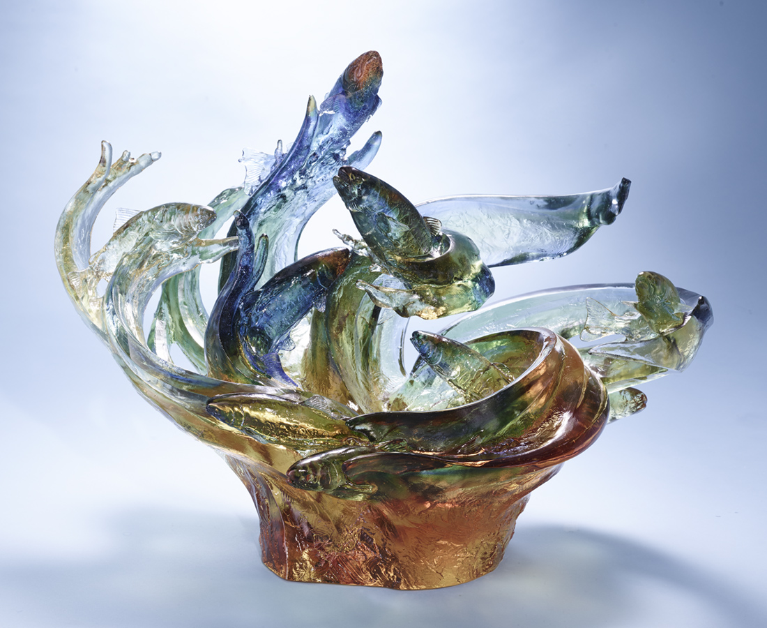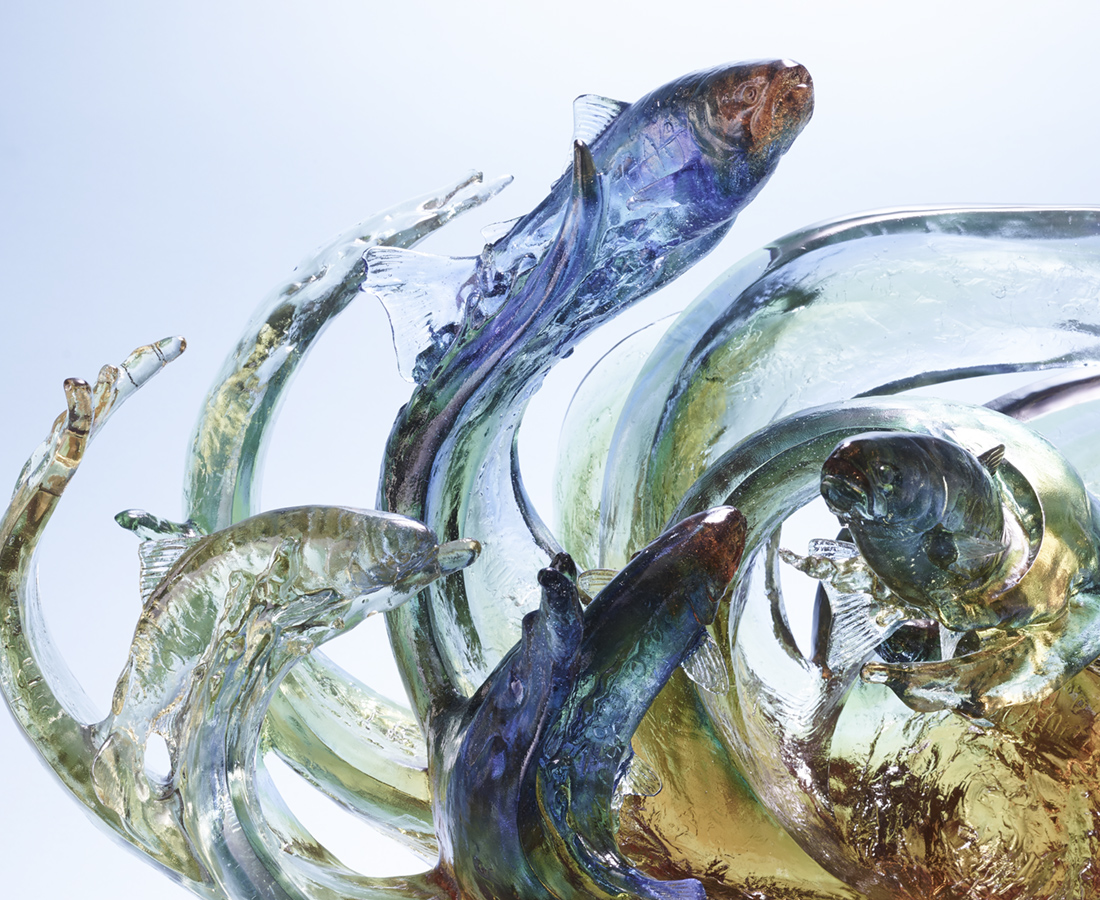 Cherry Salmon is native to Taiwan. The school of whirling Cherry Salmon in lucid river symbolizes Taiwan’s exuberant force to go up.