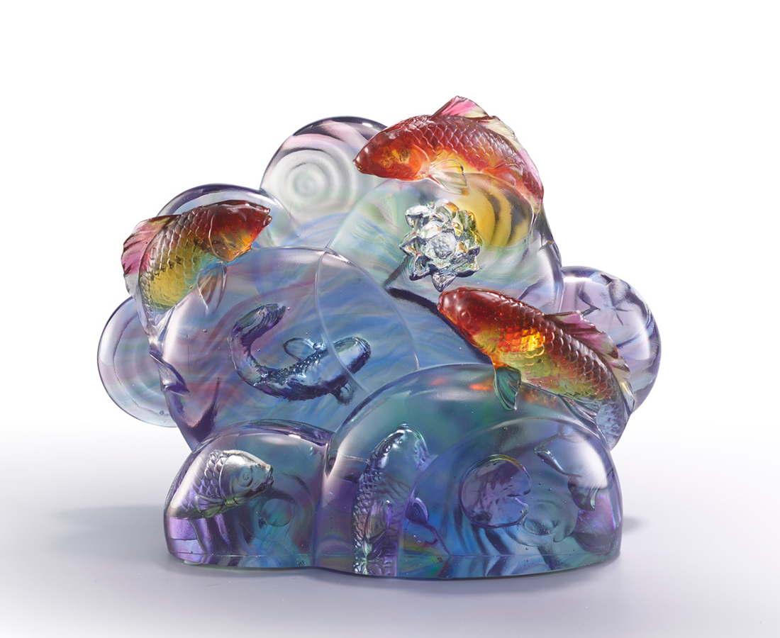 The artwork, with light being the central element, is produced by a combination of large-scale polishing and engraving. Assembling the light, the artwork appears as if it is the container of light. The other elements, including a lotus and carp, convey the blessings of peace and happiness.- NO.1543909