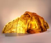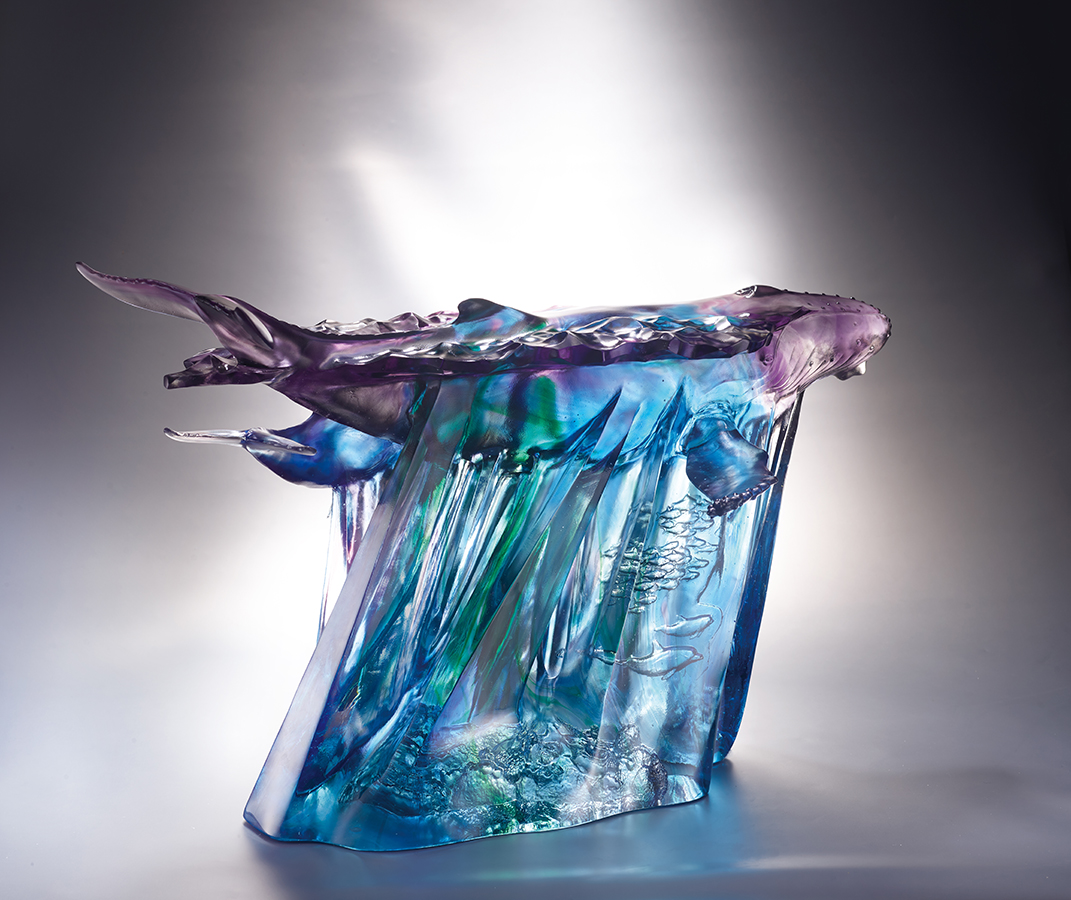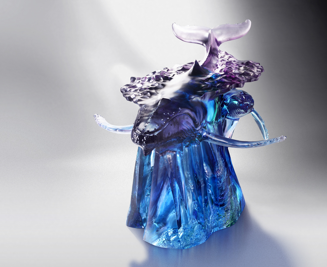 The artwork depicts the magnificence of a mother and baby humpback whale swimming in the ocean. The ocean below shows the blazing and glaring sunlight penetrating the sea surface. Through the translucency of the colored glass, both the transparency of the ocean water and the abundance of fishes are presented. The artwork conveys that only a clean ocean can sustain the vast amount of lives on this globe. The magnificent presence of the whales in the ocean, on the other hand, expresses virtue of challenging oneself and exceeding expectations.- NO.1543944