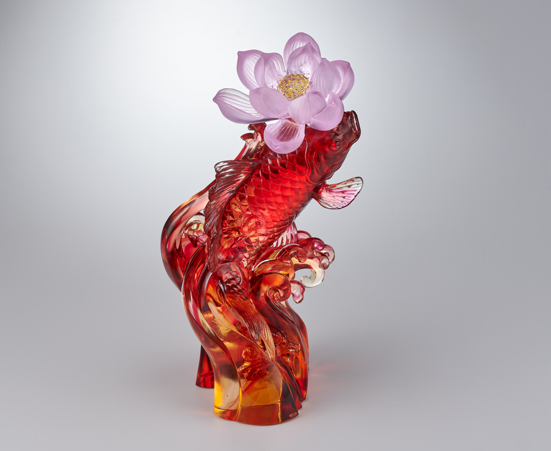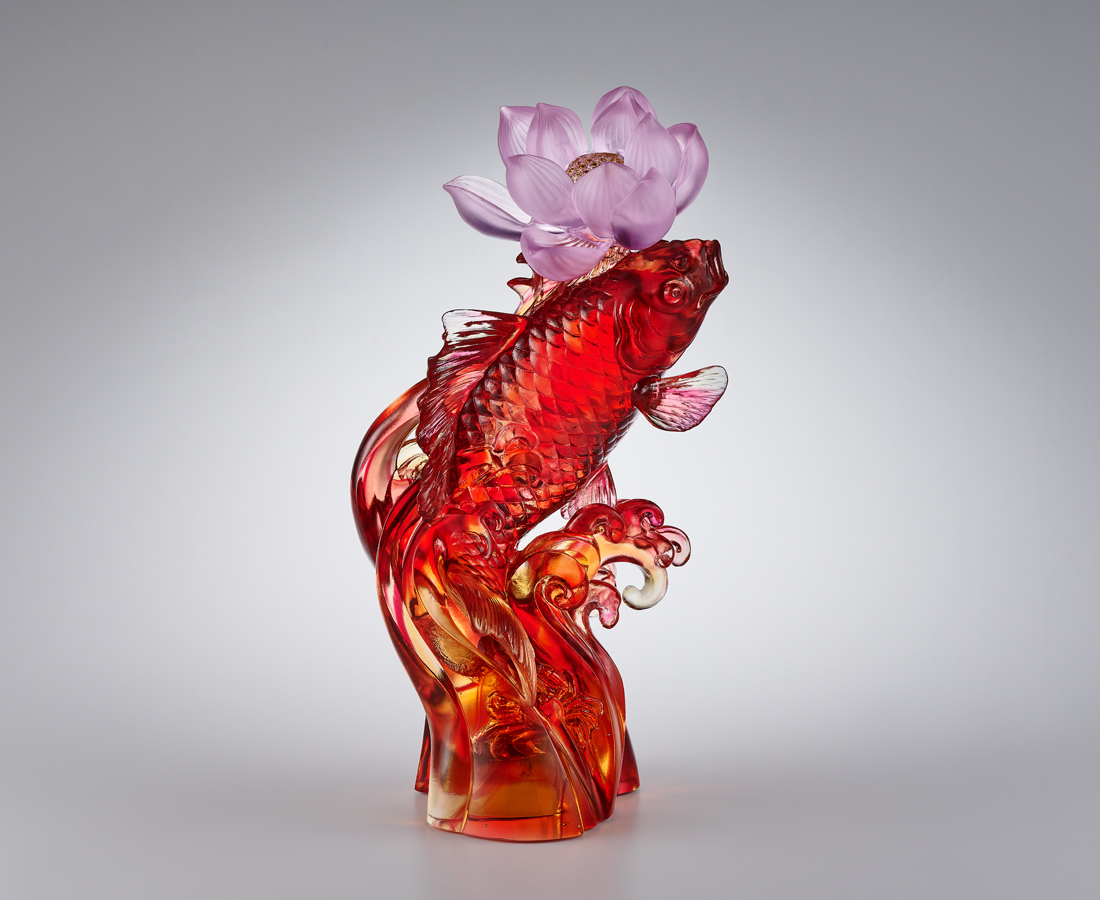 In Chinese, fish is a very popular symbol of good luck, as it has the same pronunciation as "surplus", which means that the fruits of a good harvest can be enjoyed endlessly. The energetic carp jumping out of the water looks as delightful as a lotus flower on its head and has become one of the most auspicious motifs in Chinese culture.- NO.1544111