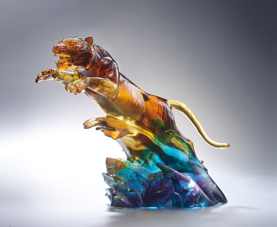 The tiger is an auspiciously mythical beast and a valorous and powerful symbol. In the work, the tiger jumped up with the momentum of the waves, symbolizing that as long as there is determination, the whole environment will become a boost, and success will be at hand.- NO.1553981