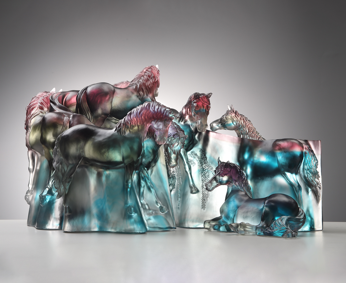 The design of this item is inspired by the National Palace Museum’s collection, “Eight Horses”, by Lang Shining (Giuseppe Castiglione), Qing Dynasty. The painting scroll is reimagined as flowing lines of auspicious clouds and ruyi motifs, viewed from a bird’s-eye perspective. Through layered relief and three-dimensional sculpting techniques, the Eight Steeds appear to stride forth from the glazed scroll itself.- NO.1554144