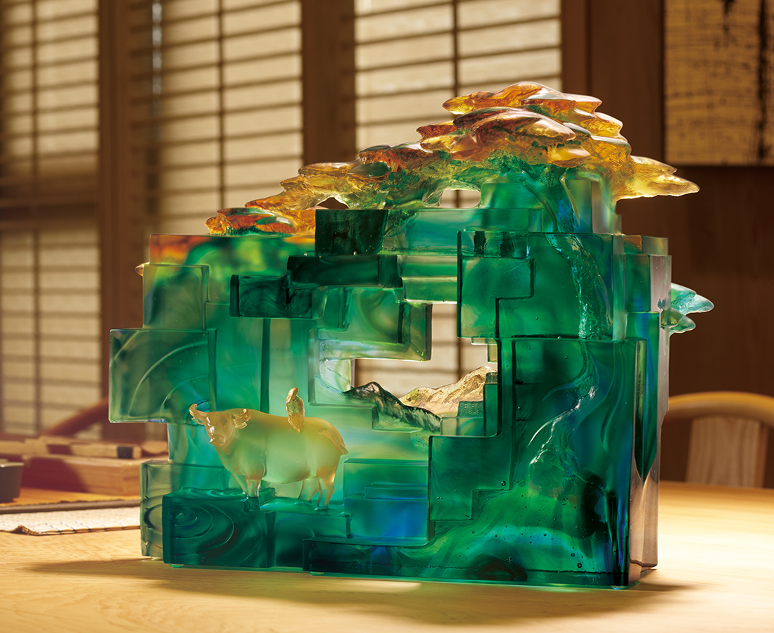 The artwork imitates oil painting with crystal glass, conveying the coziness of the countryside. Due to the translucent characteristic and different thickness of crystal glass, the designer creates a peculiar shade of color and infinite depth of field, like oil painters composing their works, layer by layer.- NO.1593895
