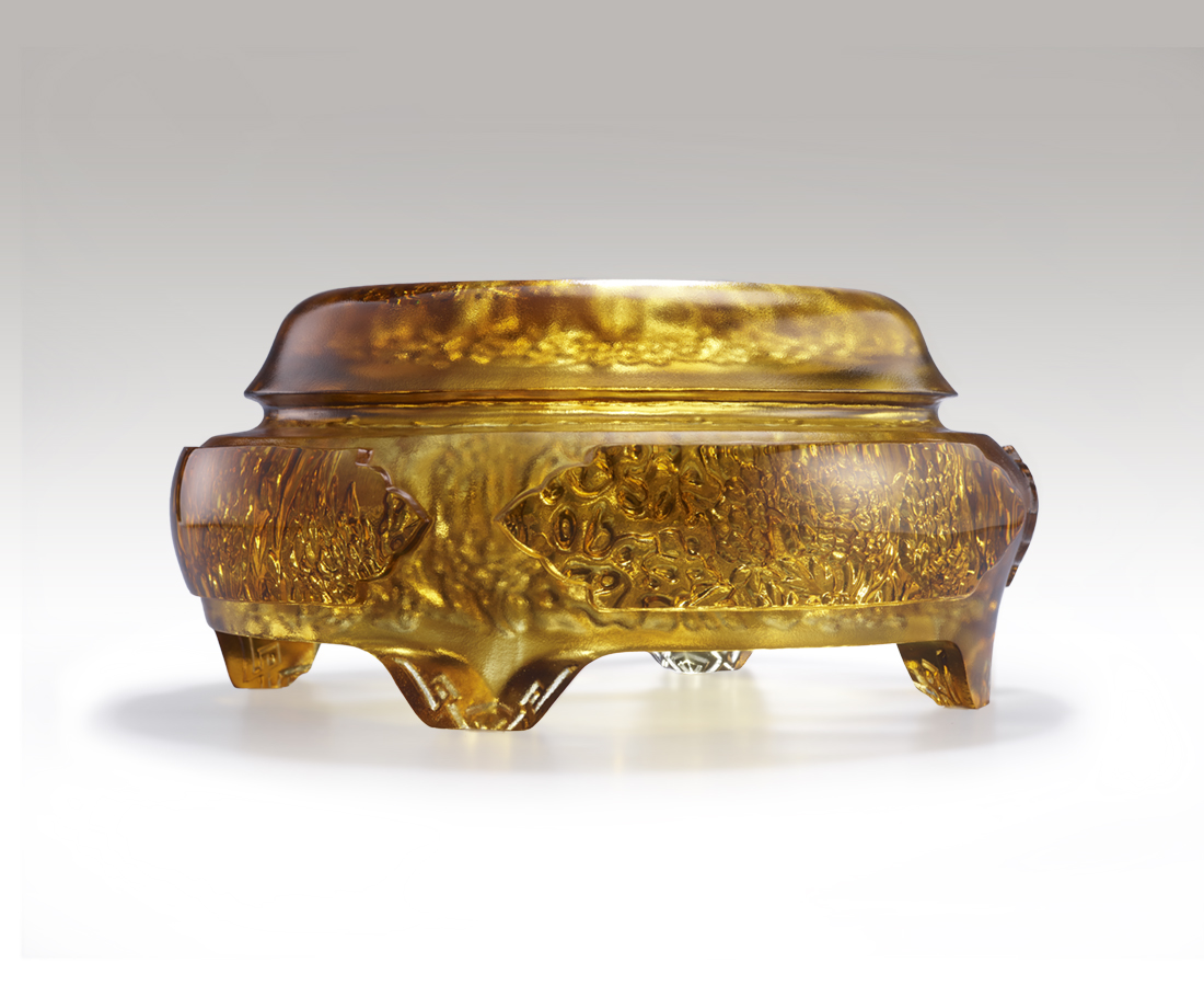 The artwork applies incense burner as its shape. The interior is engraved with intricate designs of the Taihu Stone, flowers, and the Chinese character of longevity. With its outer polishing, the artwork faintly shows the beauty of the inner art from its exterior. The Taihu Stone, after thousands of years of etching, conveys the undeniable power of nature and represents longevity.- NO.1593919